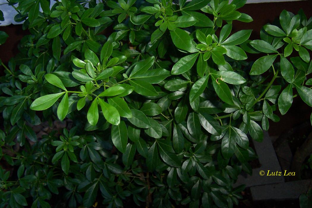ohne Probleme scheint diese Orangenblume 'Choisya ternata' das Verpflanzen vor etwa drei Monaten vom hinteren Garten auf die "Nordseite" (!!!) am Haus vertragen zu haben.