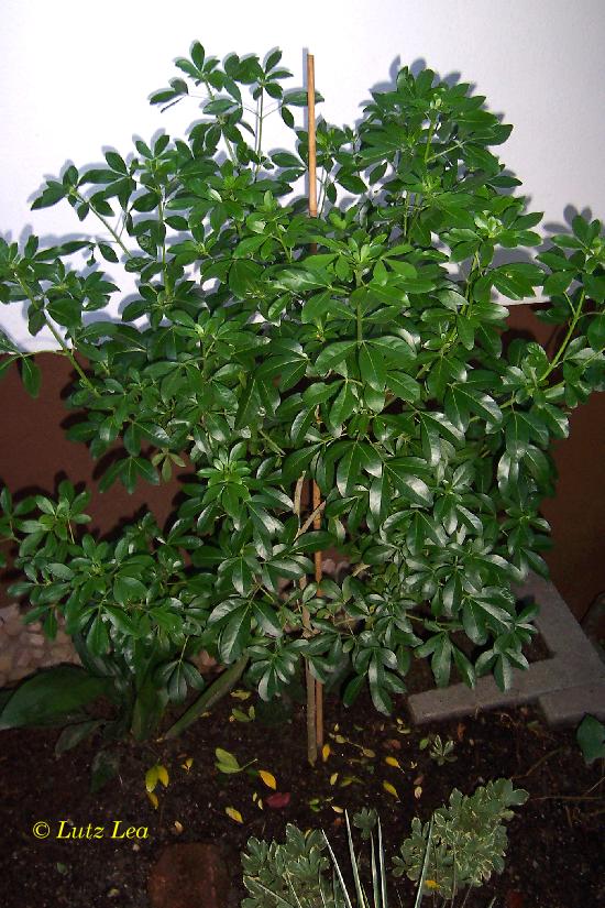 Ich hatte sie hier als „Ersatz“ für die ‚Fatsia japonica’ ausgepflanzt, die wegen Leitungserneuerungen weichen musste und nun auf der "Ponderosa" (neuer Garten bei Egelsbach) bestens wächst und gerade zur Blüte kommt (ich hatte jeweils berichtet).