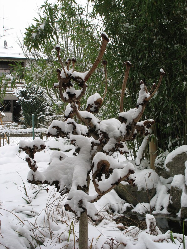 und zu Letzt eine Pflanze die weniger exotisch als ungewöhnlich ist. Im Sommer meist völlig übersehen, kommt ihre große Zeit im Winter. Sehr langsamwächsig (die bekannte Strauchkastanie A. parviflora ist eine Rakete dagegen!), die ideale Kastanie für den kleinsten Garten. Im Sommer sehr dicht belaubt mit etwa kinderhandgroßen Blättern.