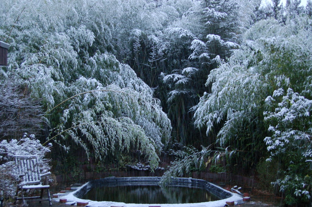 ..haben immer ihren besonderen 8und auch vergänglichen!) Reiz.Faszinierend sind sie allemal. Das Bild hier stammt allerdings vom vorletzten Winter.Die überhängenden /*Phyllostachys viridiglaucescens*/-Halme habe ich sämtlich gekappt