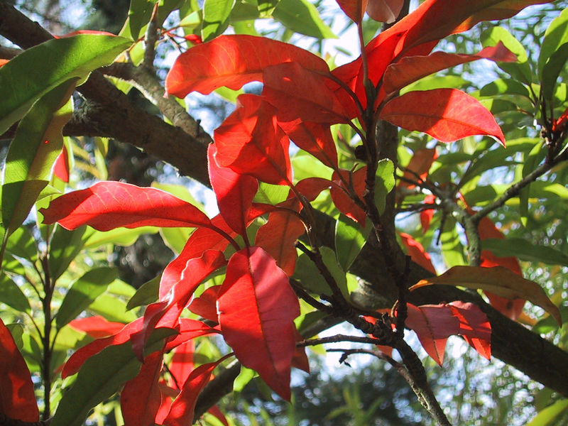 Zu jeder Jahreszeit ein Hingucker: immergrün, schöne Herbstfarben und feuerrote Früchte! Sie gehört heutzutage zum festen Bestandteil fast jeden Baumschulsortiments /*Photinia davidiana*/, nimmt bei mir allmählich Baumcharakter an (Stammdurchmesser ca 10cm)