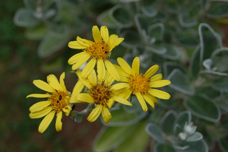 das neuseeländische Gehölz /*Brachyglottis 'Sunshine'*/ passt wegen seiner geringen Größe eigentlich in jeden Garten