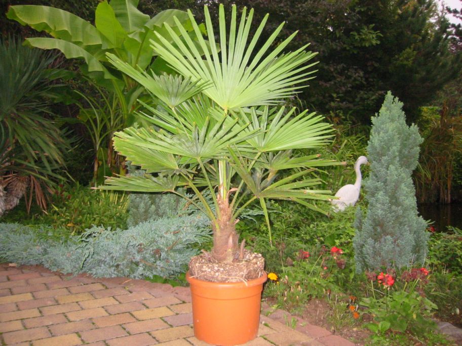 Im April 05 hatte ich diese Hanfpalme( die ich im Oktober 03 aus Bardolino als recht kleines Exemplar mitgebracht hatte) in einen größeren Topf gepflanzt und mit „Superthrive“ zum besseren anwachsen gegossen.