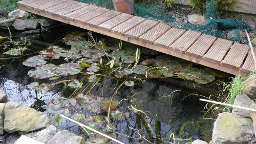 Unglaublich aber wahr, das ist meine Seerose, die mittlerweile Ende Januar besser aussieht als im Sommer. Sie ist immernoch am Treiben und wird dies wohl auch nicht mehr einstellen. Fehlt nur noch, dass sie eine Blüte schiebt. Dies hat die gelbe Seerose leider noch nicht mal im Sommer bisher getan. Ich schätze das Wasser ist einfach zu tief für sie. Vielleicht ist es eine Sorte, die flaches Wasser bevorzugt. Das Bild entstand nach der einmaligen Nacht mit -10°C. Das Wasser ist nicht mal angefroren gewesen.