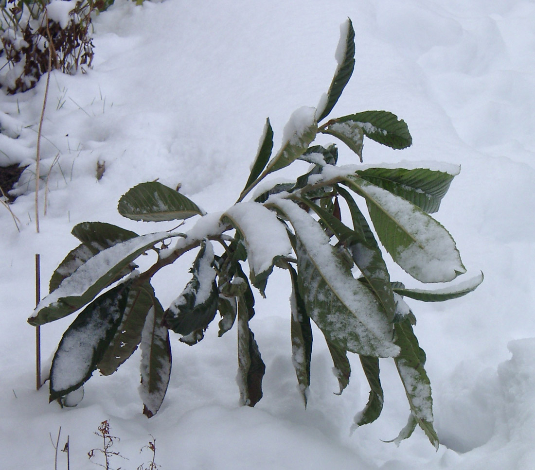 Die Wollmispel hat die Schneelast nicht verkraftet, und jetzt "einen Schlag schräg"