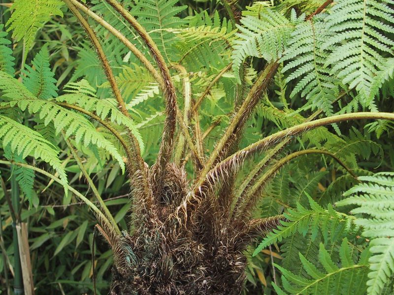 Wer auf "Nummer sicher" gehen will, sollte seine Baumfarne im Kübel versenken u. im Spätherbst wieder einräumen. Im Garten verursachen die urigen Gewächse ein absolut tropisches Ambiente.