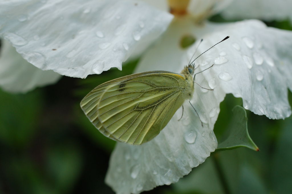/*Romneya coulteri*/ mit Kohlweißling