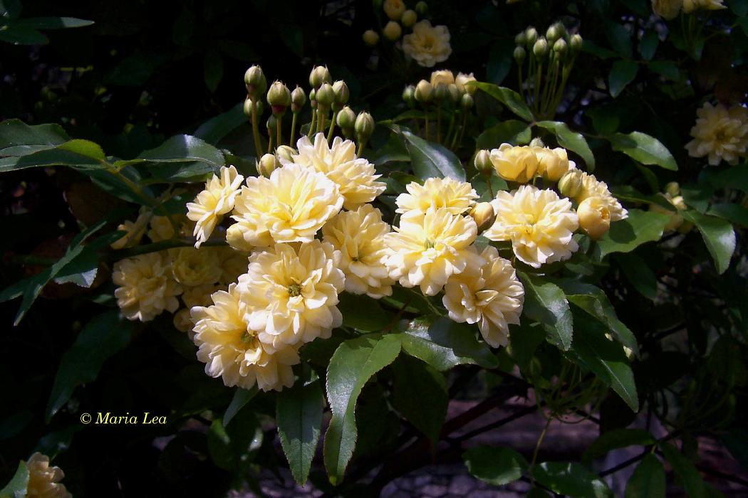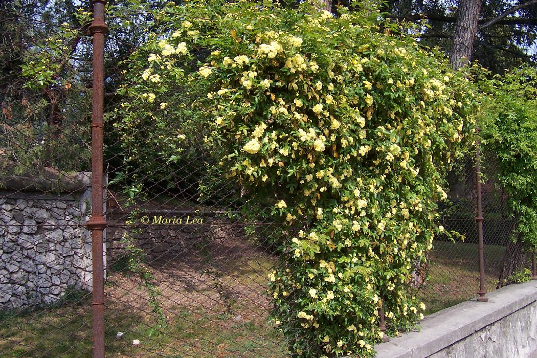 Erklimmt und "bewuchert" oft Bäume und Zäune bis auf 10 m Höhe - die "Banks Rose" - oft auch in 'Meran' anzutreffen (dort als "Meran-Rose" bekannt)!