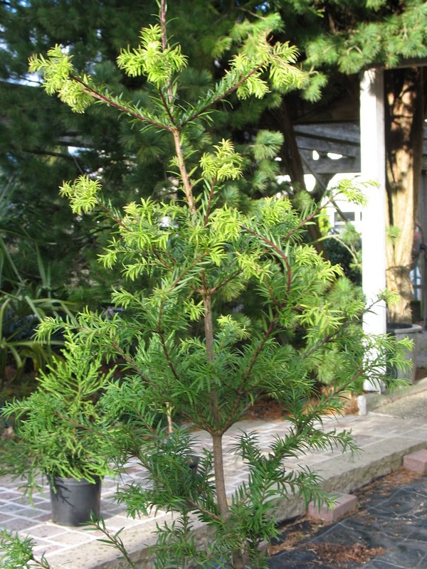 aus Patagonien. Sieht auf den ersten Blick wie eine zerrupfte Eibe aus, ist aber der botanische höchst interessante Link zwischen Podocarpaceae und Araucariaceae. Der seltsame Name? Zu Ehren von Queen Victorias Gemahl Prince Albert, bzw. seiner preußischen Heimat.