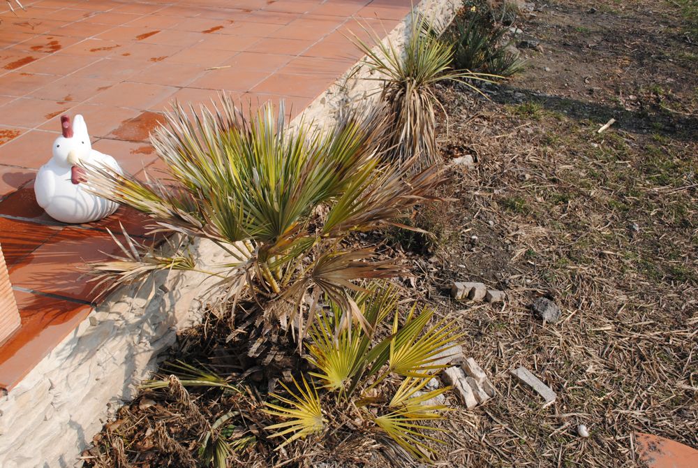 Chamaerops muss da durch, Nannorrhops und Trithrinax bekamen heute wieder Jutesäcke drauf