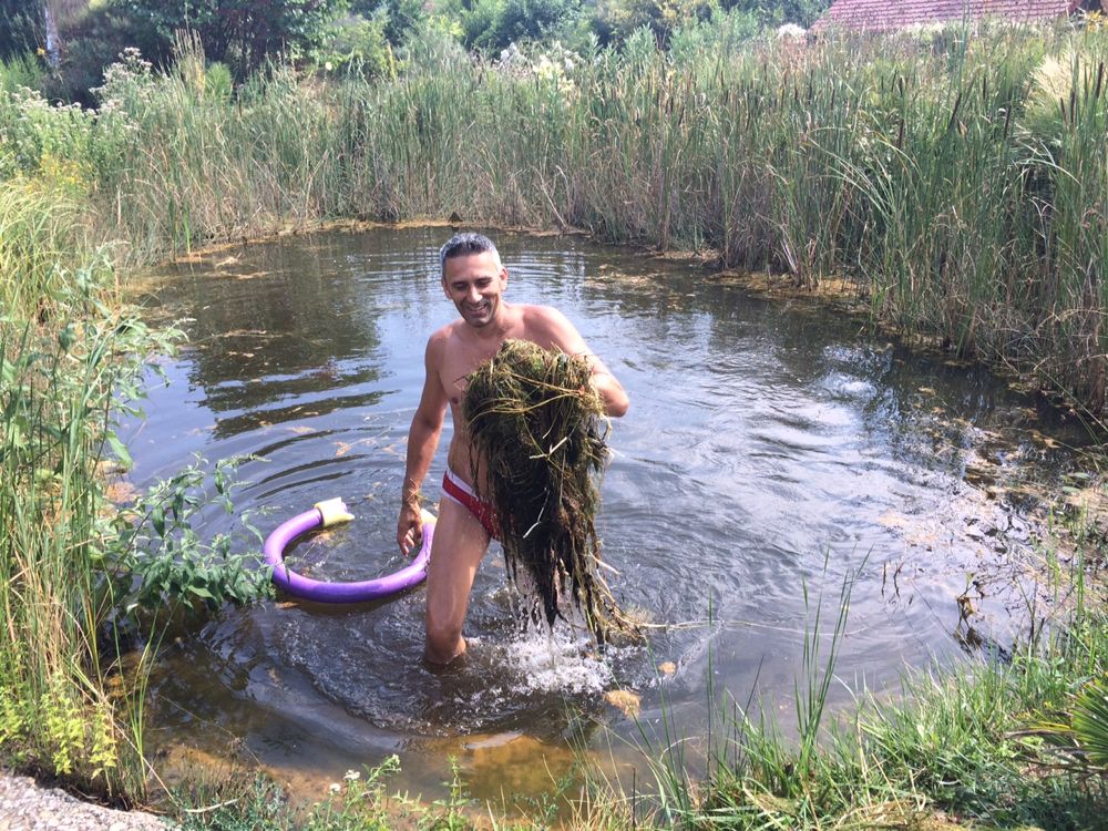 Und so musste ich den letzten Tag mit über 35 noch für eine sinnvolle Tätigkeit nutzen. Endlich wurde der Schwimmteich gesäubert von all den Wasserpflanzen