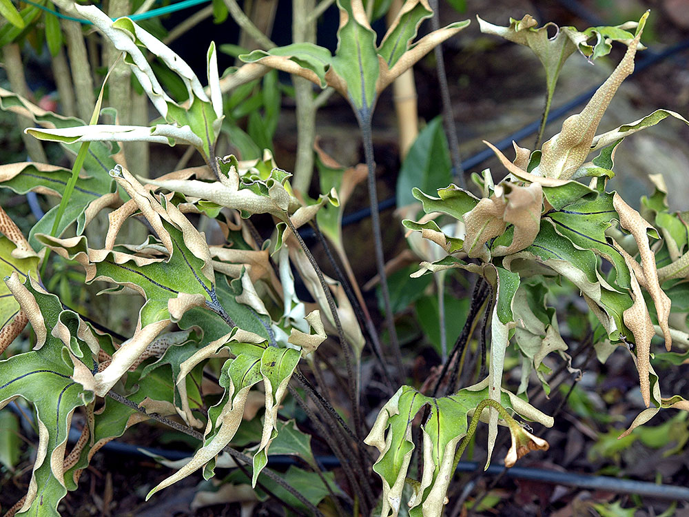 /*Pyrrosia polydactlya*/der die Wedel zwecks Reduzierung der Verdunstung total einrollt