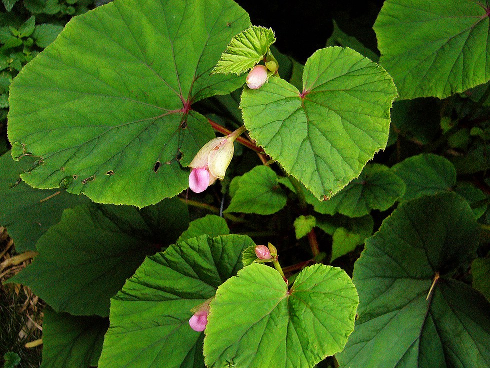 Die winterharte /*Begonia grandis*/ steht im Schatten und zeigt erste Knospen.