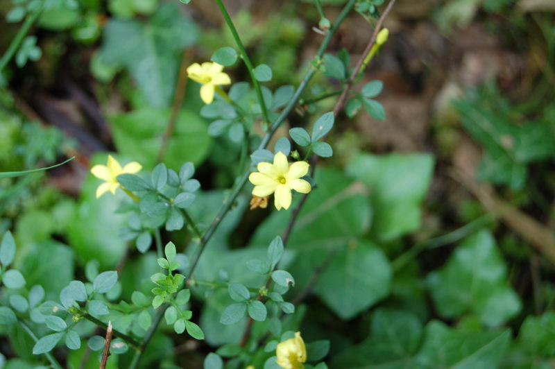 /*Jasminum parkeri*/ aus dem westl. Himalaya passt ebenfalls gut in den Felsengarten