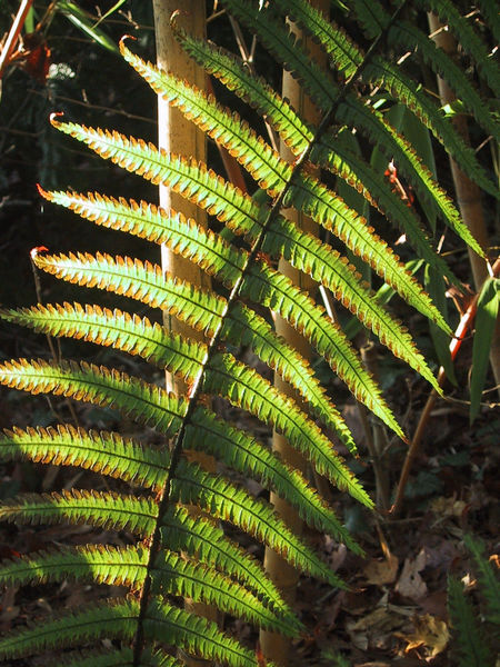 /*Dryopteris wallichiana*/,ein mächtiger,in milden Wintern immergrüner,Farn aus dem Himalaya vor Phyllostachys vivax aureocaulis