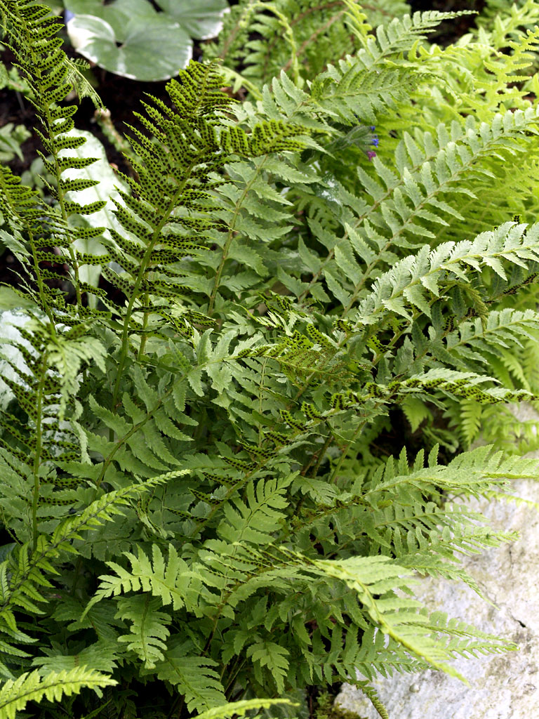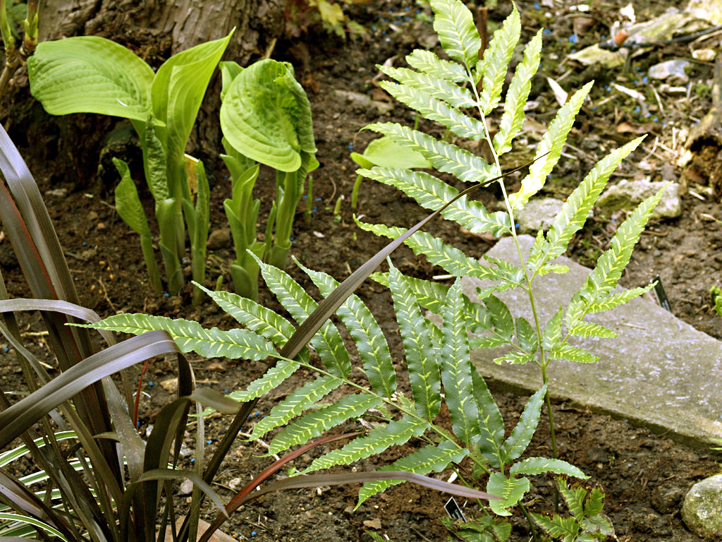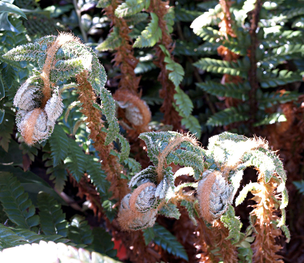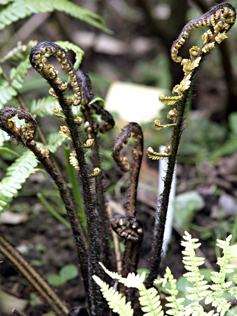 /*Polystichum tripteron*/ einer der wenigen NICHT!!! wintergrünen Schildfarne hat direkt nach dem Austrieb schon reife Sporen, absolut ungewöhnlich.