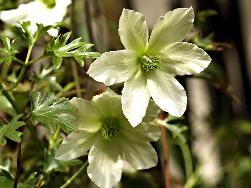/*Clematis 'Early Sensation*/ bekommen habe ich sie als armandii Sorte, stimmt allerdings nicht, duftet nicht, ist aber immergrün,und mit dem ungewöhnlichen Laub recht exotisch.