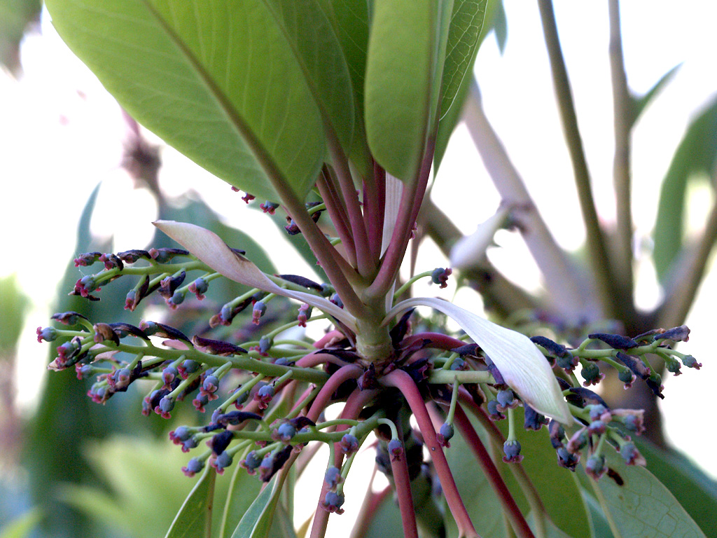 /*Daphniphyllum macropodum*/ mit den so attraktiven Fruchtständen.