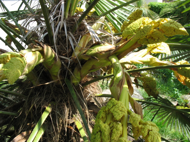 von 9 Blütenständen hatte ich bereits berichtet und diese waren weitgehend schon im Herbst zu sehen. Jetzt muss ich korigieren, die Palme schiebt nun noch welche nach: 11 werden es bis jetzt