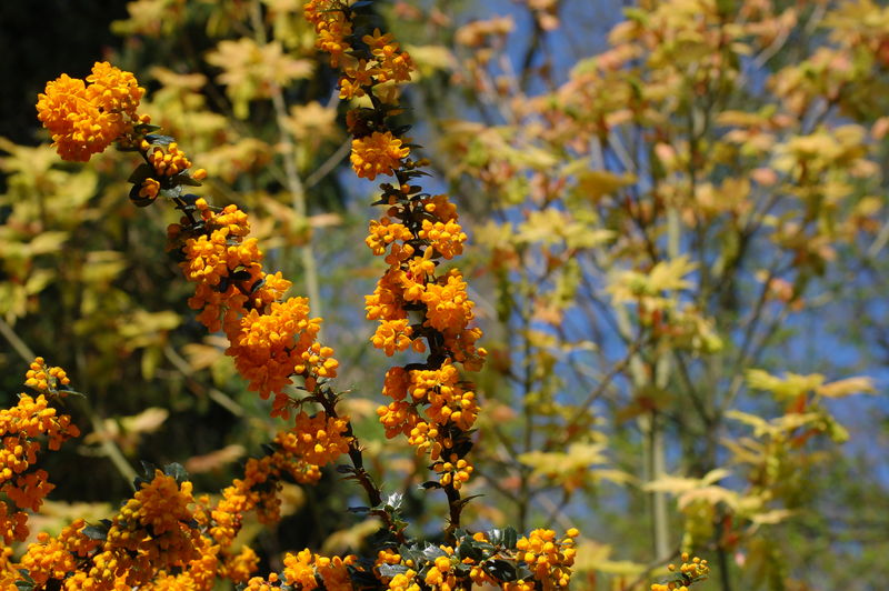 Wunderschön blüht dieses Jahr /*Berberis x lologensis */ vor Acer pseudoplatanus Brillantissimum