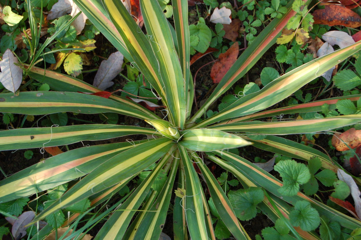 eine meiner /*Yucca filamentosa 'Color Guard'*/-Pflanzen hatte das ganze Jahr über, vorwiegend im Basalbereich der Blattrosette eine rötliche Verfärbung, was ja allg. als Stressfärbung bezeichnet wird!....nur![]()