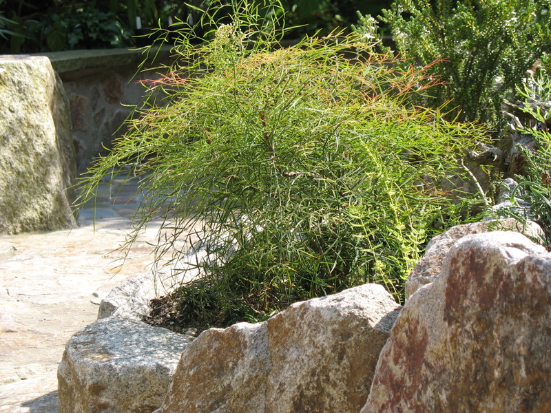 Nandina domestica 'Orhime' läuft in dieser Beziehung so mancher Acer palmatum-Sorte den Rang ab. Erstmals zeigt sich eine Blüte
