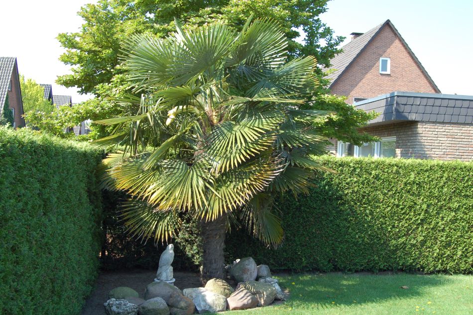Diese Trachy wurde mit einer Stammhöhe von ca. 50 cm vor ca. 9 Jahren ausgepflanzt. Sie hatte bisher nur eineml einen Winterschutz.