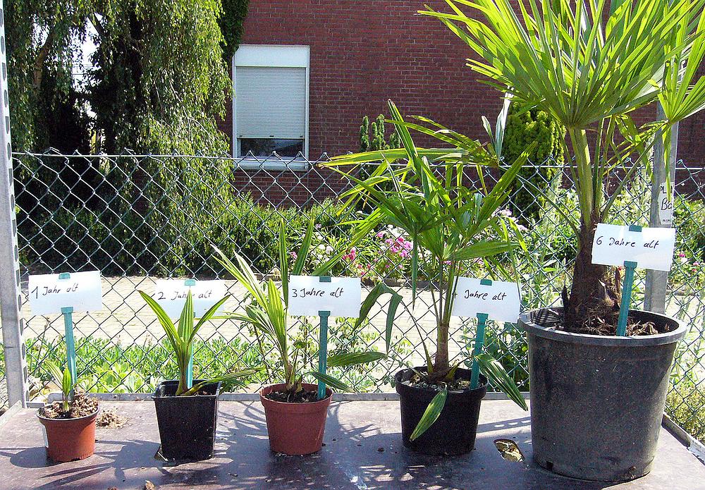 Demonstration des Wachstums einer /*Chamaerops humilis*/ (1. bis 6. Jahr).