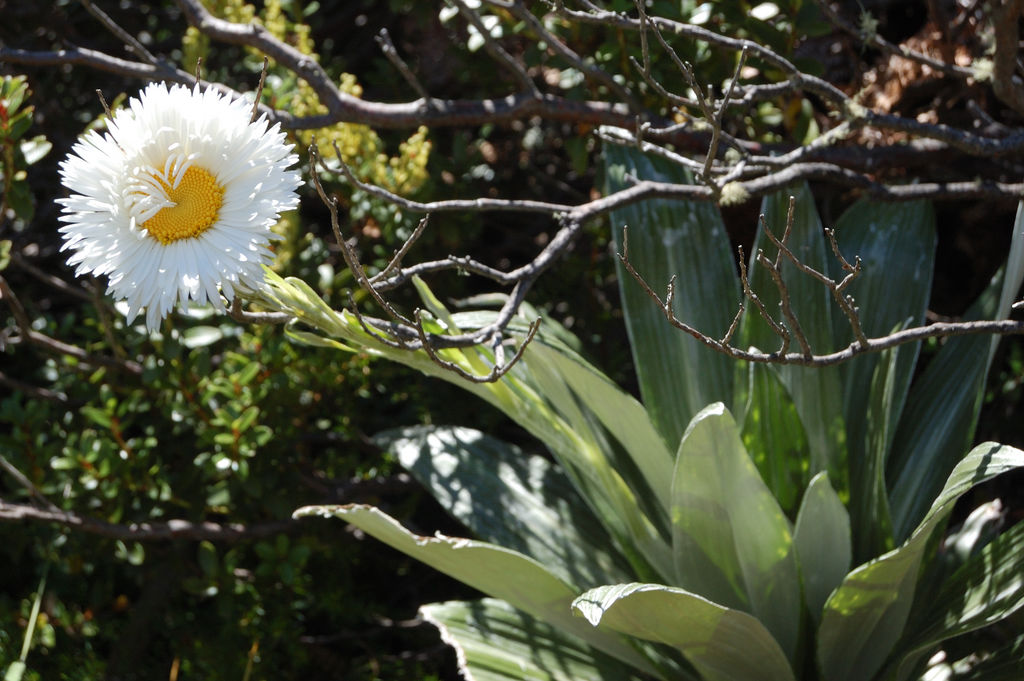 /*Celmisia semicordata*/ mit bis zu 1/2m langen silbrigen Blättern