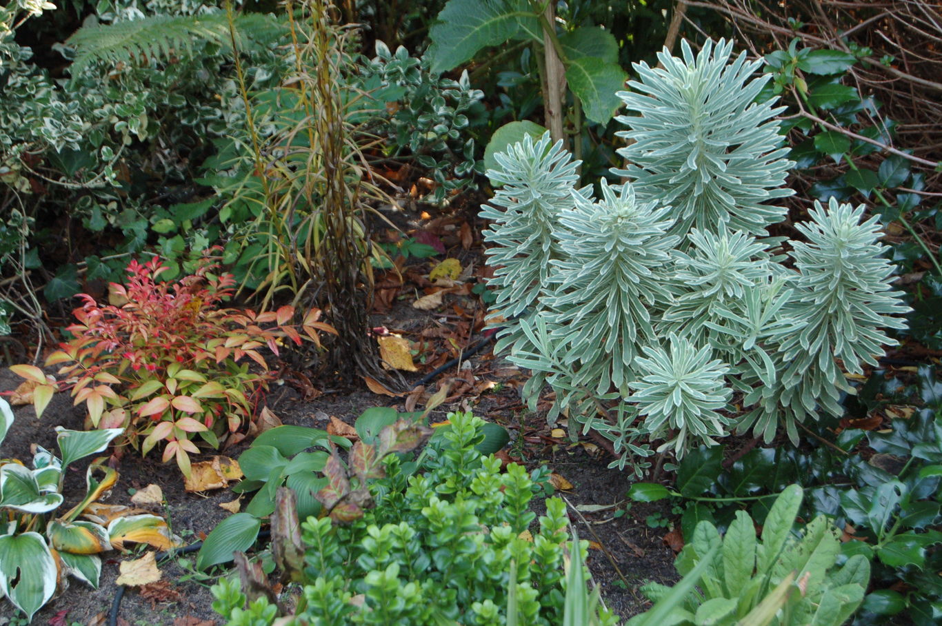 leuchtend orangeroten Selektion von Nandina domestica die panaschierte Euphorbia characias wulfenii#AM