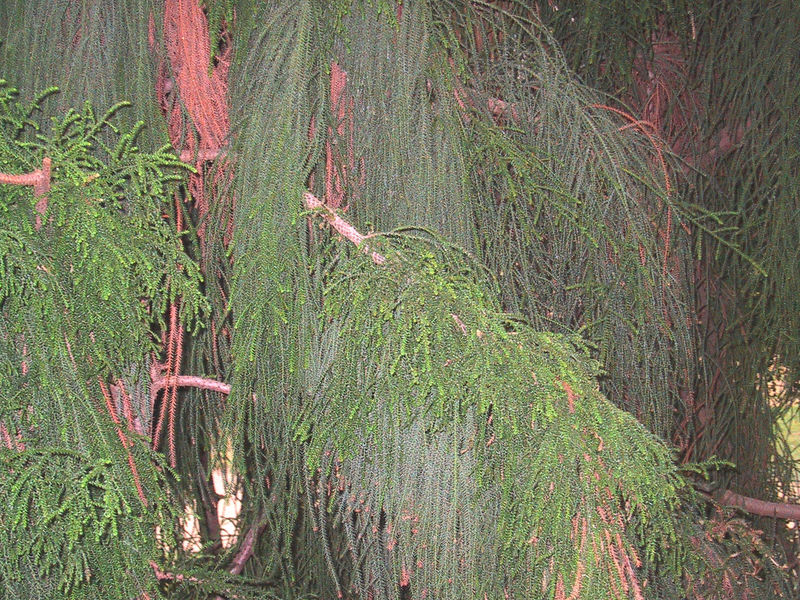 der Neuseeländer Rimu (/*Dacrydium cupressinum*/) KH wirkt wie ein grüner Wasserfall