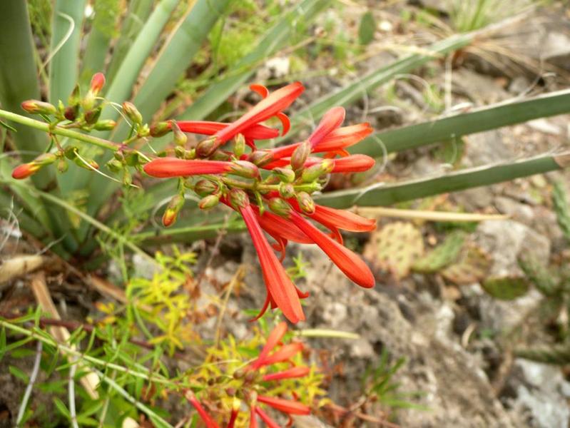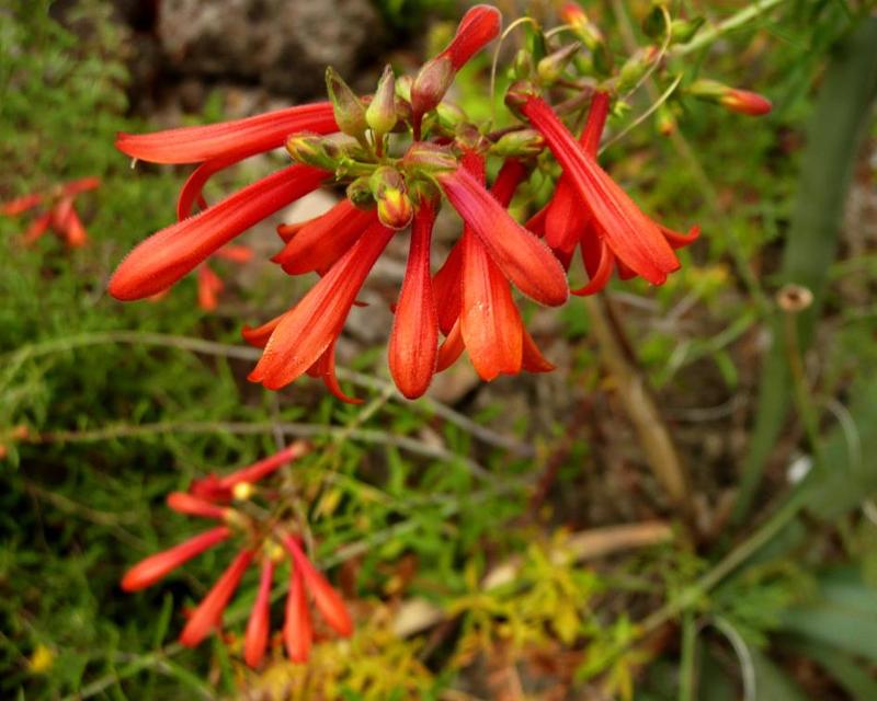 mit ihren leuchtendroten Kolibriblüten an ihreen langen wippenden Zweigen, ist die kalifornische /*Keckiella ternata ssp. septentrionalis*/