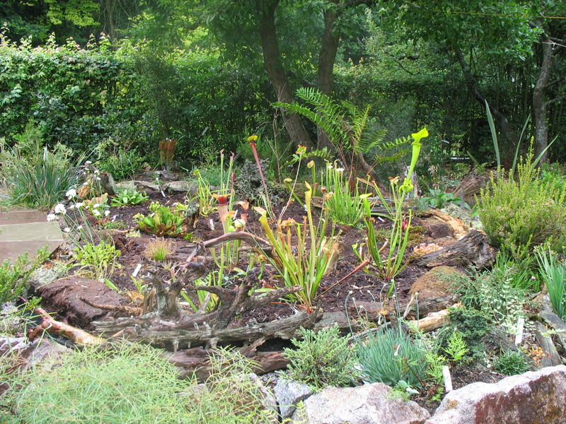 für Fliegen und Anverwandte ist nun weitgehend fertiggestellt und bepflanzt. Wobei "Todeszone" durchaus ernst gemeint ist. Selbst meine Familie hat schon wohlwollend festgestellt, dass kaum noch eine der lästigen Schmeißfliegen beim Kaffee auf der Terrasse den Kuchen attakieren. Durch die Lockgerüche besonders der Schlauchpflanzen werden sie zu den Fallen umgeleitet.