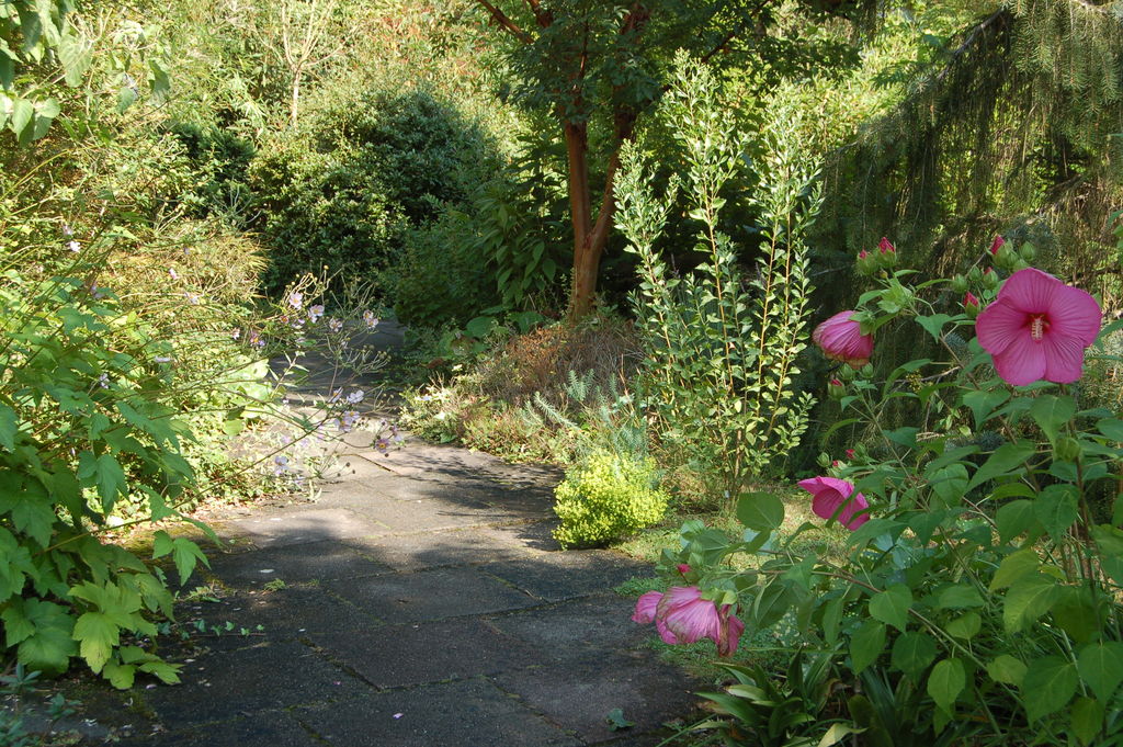 Ich bin ja schon froh, dass man die Winterschäden nicht mehr sofort erkennt und manch eine verloren geglaubte Pflanze sich wieder erholt hat.Auf den 1.Blick scheint fast alles wieder o.k. zu sein.Hier /*Hibiscus moscheutos*/ vor /*Baccharis halimifolia*/
