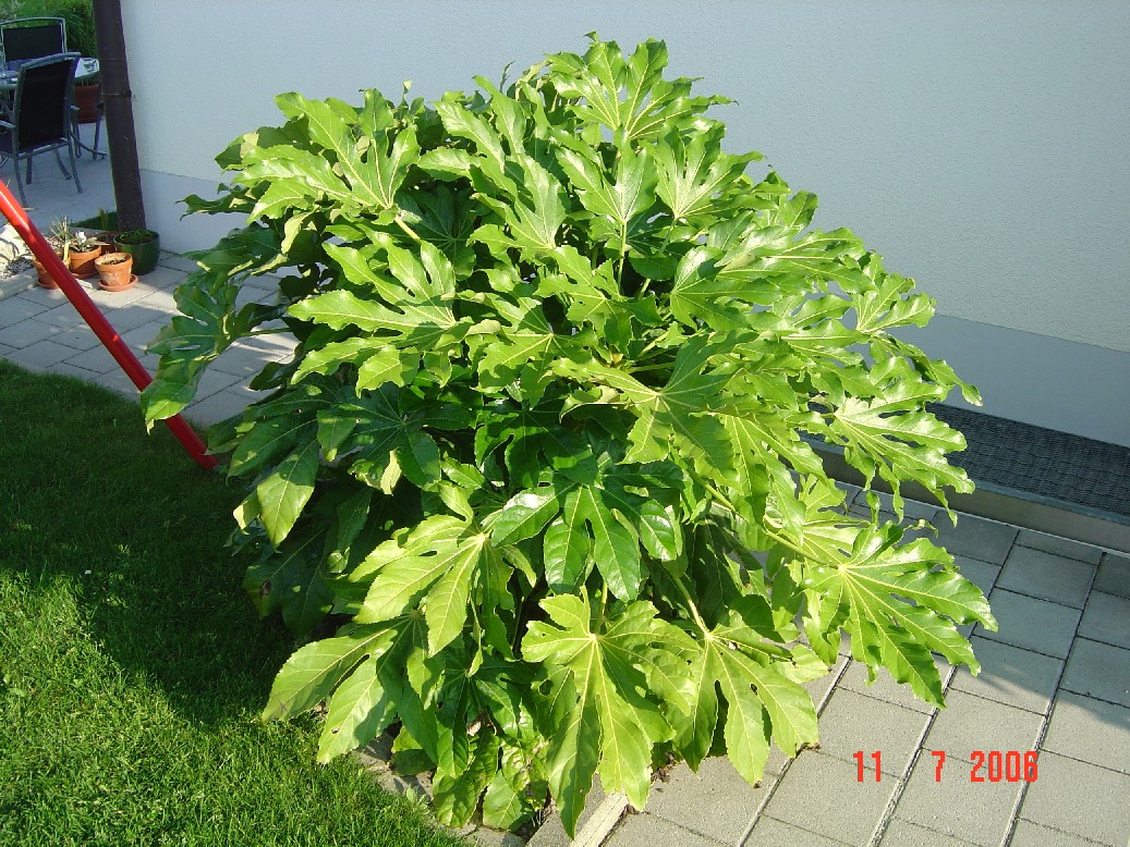 Innerhalb von 2 Jahren ist diese Fatsia zu einer stattlichen Pflanze herangewachsen und das alles ohne Dünger und bei schlechten Bodenverhältnissen.