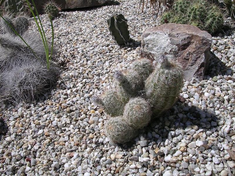 Auch die nässeempfindlicheren Kakteen hatten ohne Schutz wieder mal nicht das geringste Problem. Vordergrund Echinocereus reichenbachii.