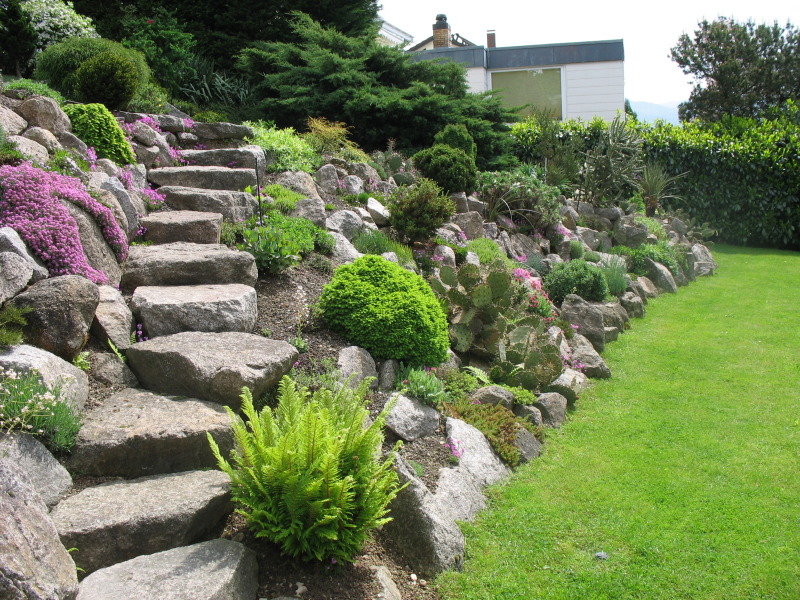..über einen Teil der mittleren Etage des Hanggartens. So ca. 30 - 40 to heimischer Granitsteine haben wir hier mit Sack- und Schubkarre reingekarrt und per Hand aufgesetzt. Mann, hatten wir früher noch Power