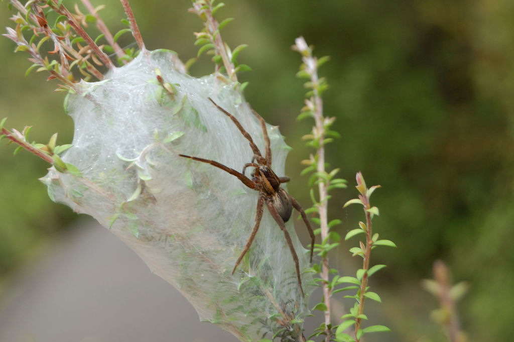 es gibt nur ein einziges giftiges Tier in NZ, eine Art "Schwarze Witwe": diese hier baut gerade ihr Nest in einer Leptospermum-Pfl. ...und ist NICHT giftig!!!!