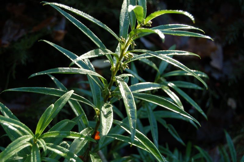 z.B. /*Sarcococca saligna*/ ein äußerst attraktives immergrünes Gehölz
