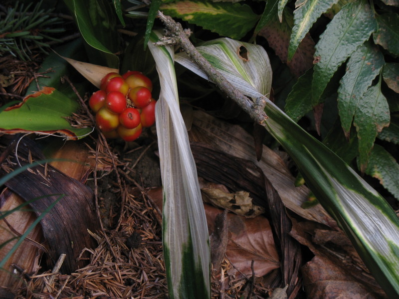 ...haben sich bei mir über die letzten 15 Jahre als völlig winterhart erwiesen, mit bisher einer Einschränkung: die sehr auffällig weißbunt gefärbte (und leider auch teure) Sorte 'Washitakakuma'. Nicht dass sie vollkommen erfrieren würde, nein, sie hat einen "Konstruktionsfehler", der große Weißanteil der Blätter ist nicht hart - nicht einmal in Mildwintern, wie dem letzten. Außergewöhnlich auch die bei dieser Sorte zweifarbigen Früchte.