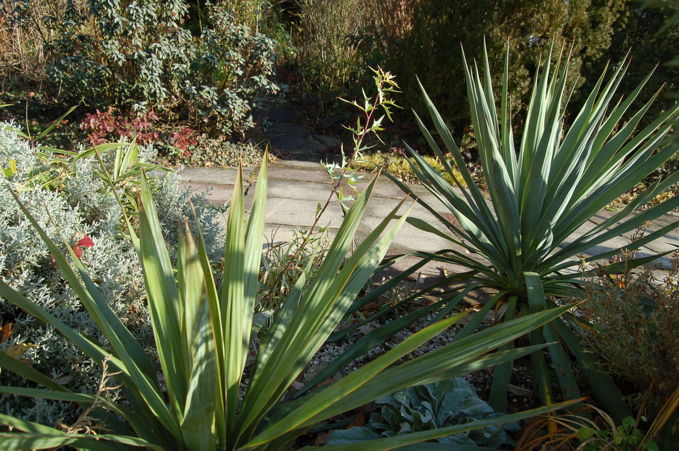 mit /*Mahonia trifoliata Glauca*/ und Yucca gloriosa x recurvifolia-Komplex (2 Sorten)#AM