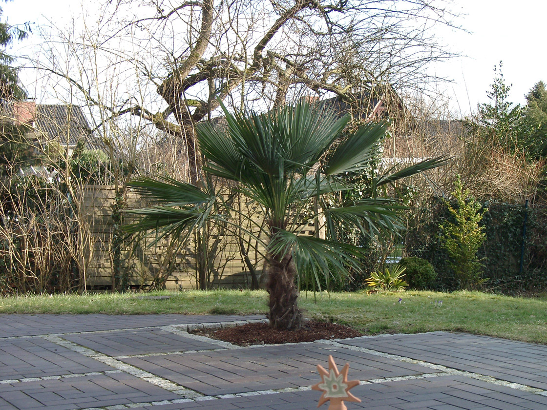 Bei einer Palme wie der gezeigten ist es aber einfach und schnell gemacht, und meine Erfahrungen sind positiv. Ich würde allerdings nicht die bereits steifgefrorenen Blätter zusammenbinden, das muß man schon rechtzeitig vor dem Dauerfrost machen. Natürlich gibt es noch schonendere Schutzmethoden (Umbauung) aber die sind auch erheblich aufwändiger.