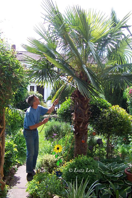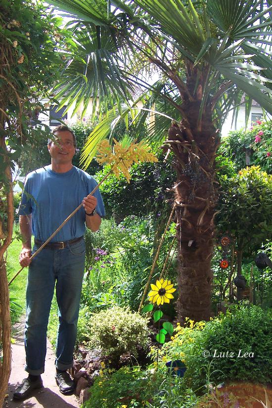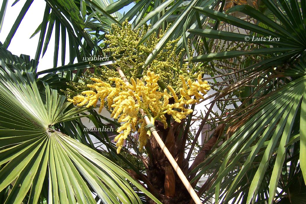 Da ich auf Nummer Sicher gehen wollte und die späteren Samenstände an Hanfpalmen ganz reizvoll/atraktiv finde, habe ich da eben ein wenig nachgeholfen. Nicht immer steht der Wind so günstig und trägt den Pollen vom Männchen zum Weibchen.