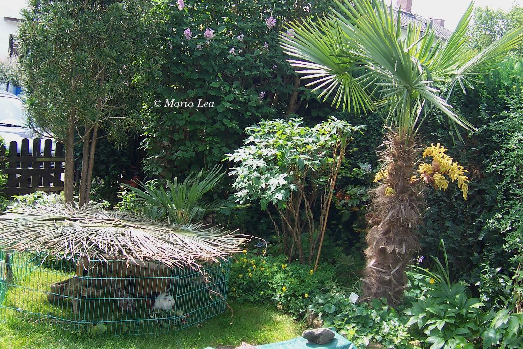 aus. Die abgeschnittenen Fächer eignen sich toll als Abdeckung (Sonnenschutz) für den Meerschweinchenauslauf (links im Bild)!