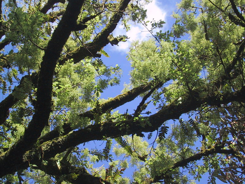 Eines der schönsten Blütengehölze in April:/*Plagianthus regius*/ oder Ribbonwood, ein Malvengewächs aus NZ, bewachsen mit Moos und Farnen: EIN TEIL AUS EINER ANDERE WELT!!