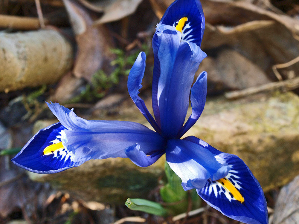 Eine kleinblütige/*Iris*/ seinerzeit von der Gräfin bezogen, das Namensschild ist leider vom Wind (oder den Amseln) verweht.