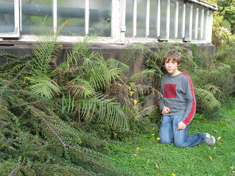 recht ungewöhnlich das langjährige Gedeihen von /*Pteris longifolia*/ auf der Außenmauer dieses alten Wasserpflanzengewächshauses. Da das Gebäude mit tropischen Wasserpflanzen ständig beheitzt ist, dürften die Wurzel des Farnes eher kaum extremer Kälte ausgesetzt sein.
