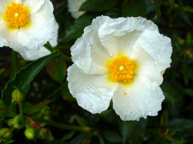 ..und hier Einzelblueten des /*Cistus laurifolius*/. Sofort wieder verblueht, aber es kommen massenhaft neue....