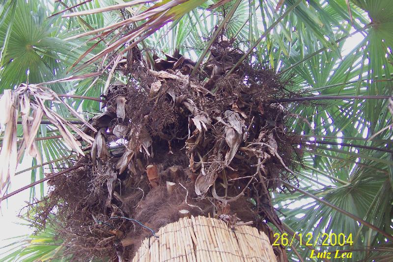 ... die Stammspitze (Kronenbereich) ist sehr wulstig, knorrig und verdickt - alles abgeschnittene/abgefallene Altblattbasen und Blütenstielreste.