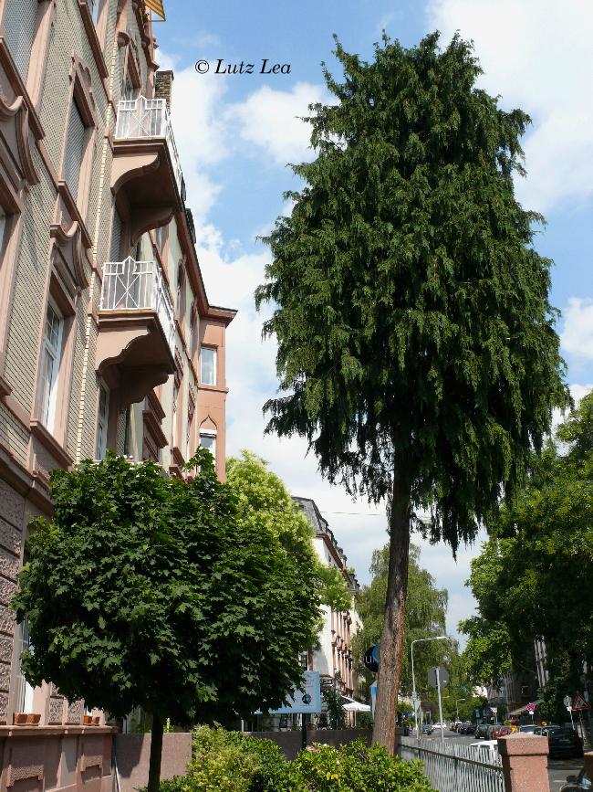 ich weiß nicht genau um welche Konifere es sich genau bei dem eventuell schon einhundertjährigem Exemplar in Frankfurt am Main Sachsenhausen, in der Schwanthalerstraße 48 handelt?